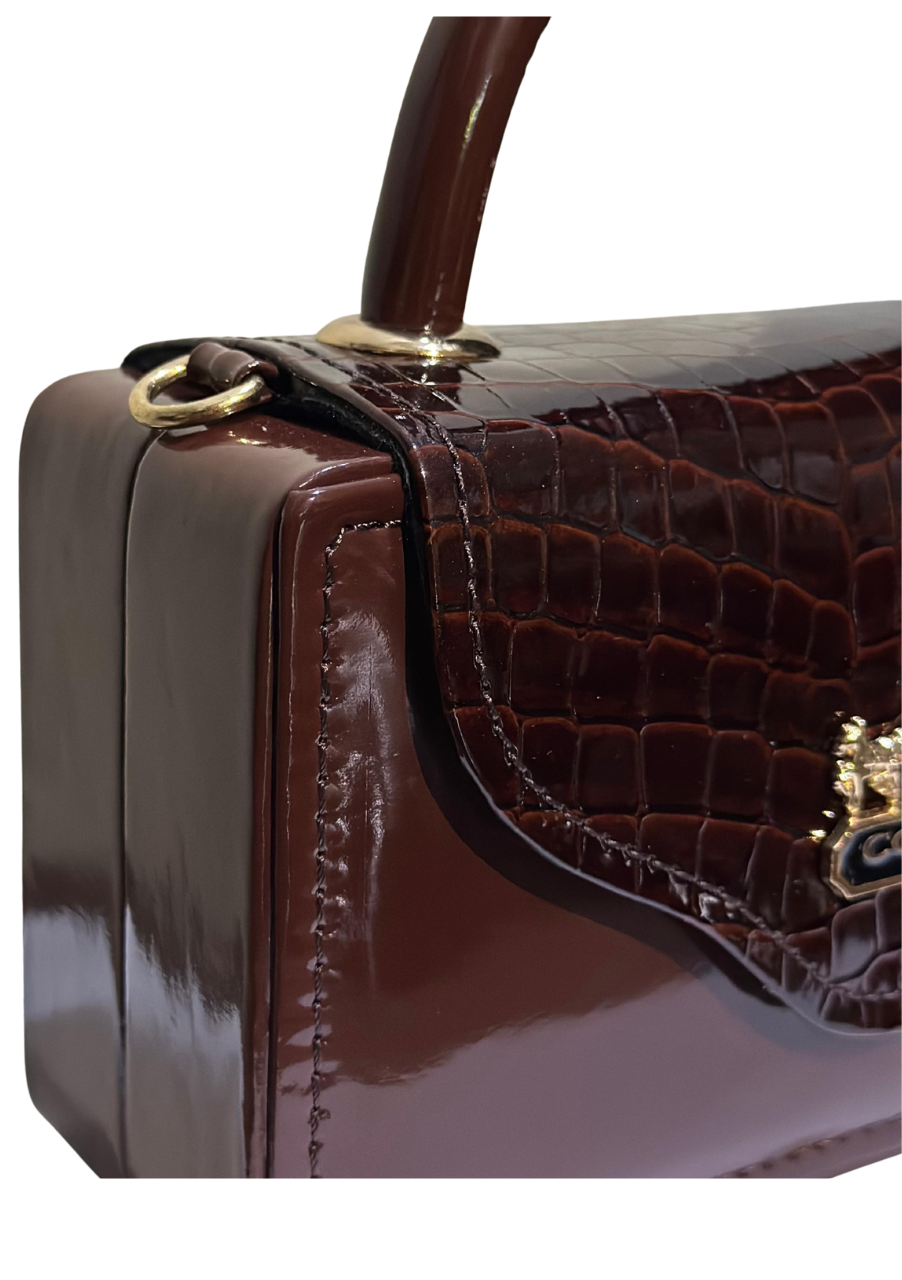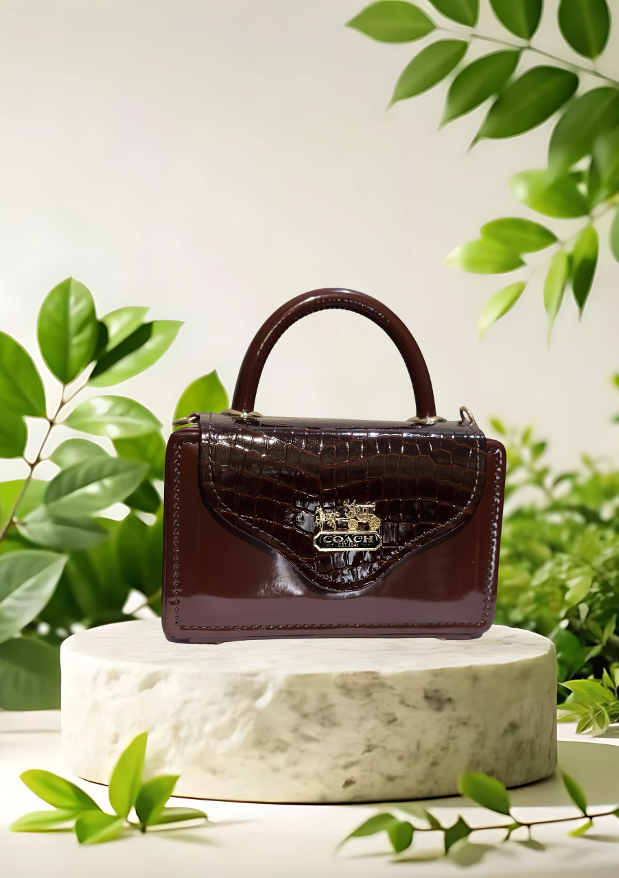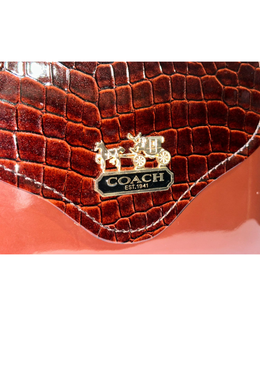 Make a bold and timeless statement with the Coach croc-embossed leather handbag in rich brown. This luxury designer bag showcases Coach’s signature craftsmanship, blending a glossy crocodile-textured finish with a structured silhouette for ultimate elegance.