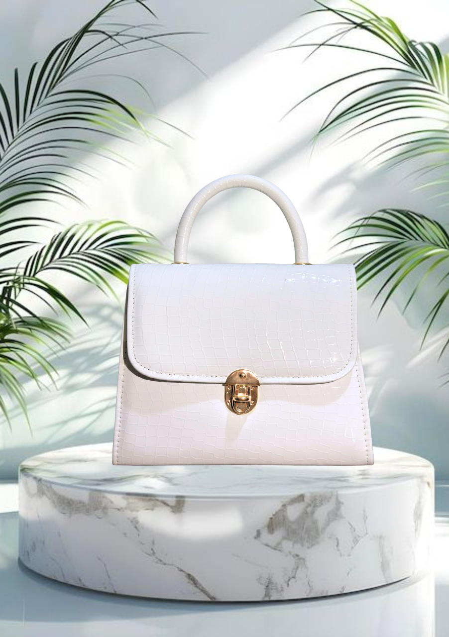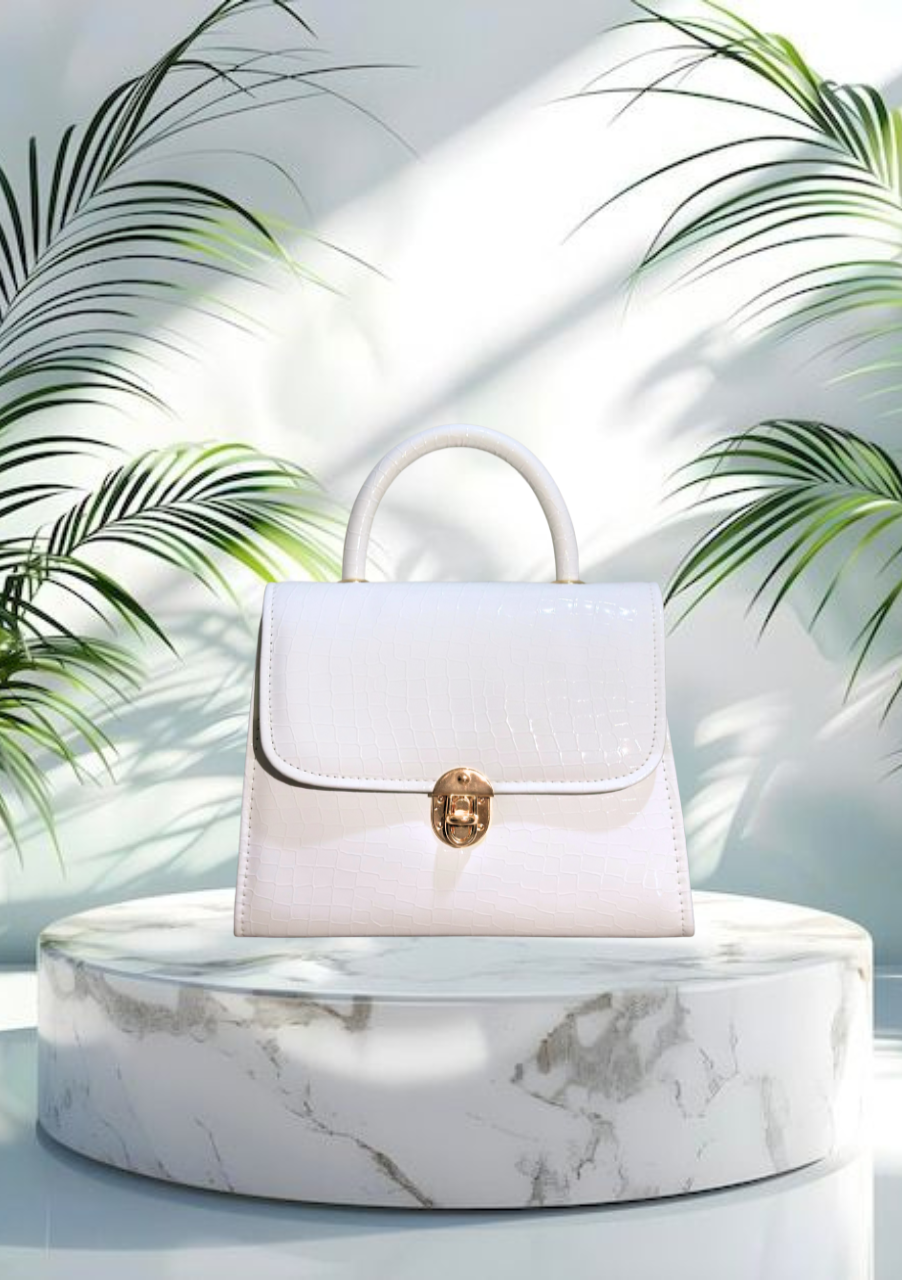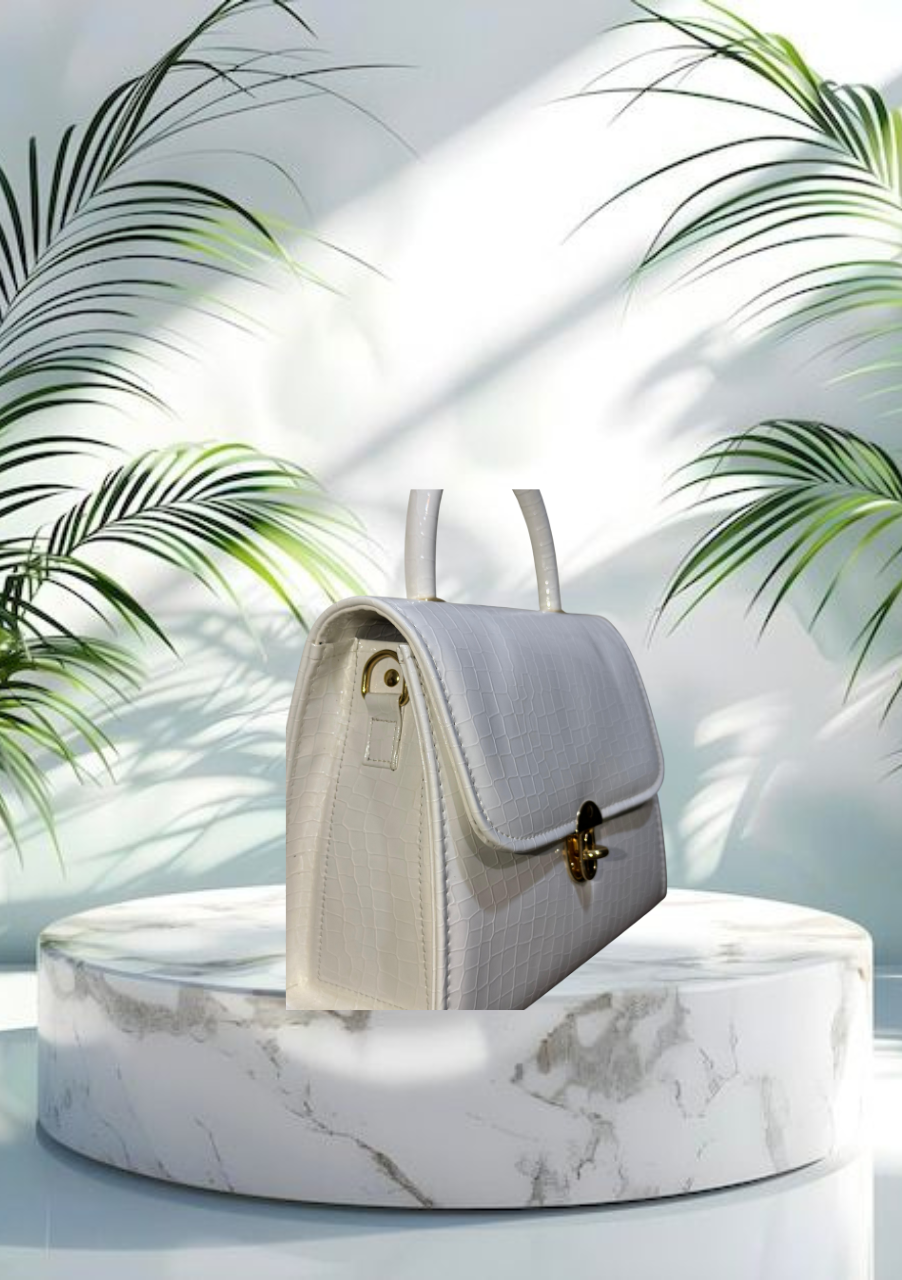 Elevate your style with this luxury white croc-embossed handbag, designed for women who love timeless elegance with a modern touch. Crafted from premium faux leather with a sleek crocodile texture, this structured top handle purse is the perfect companion for both day and night.
